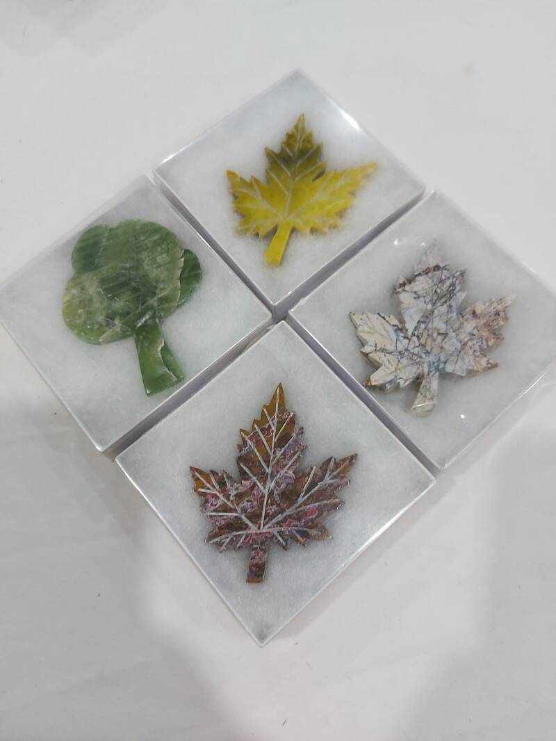 Maple Leaves and other handicrafts have been crafted out of semi-precious stones Jasper, Jade, Lapis, Serpentine and others.